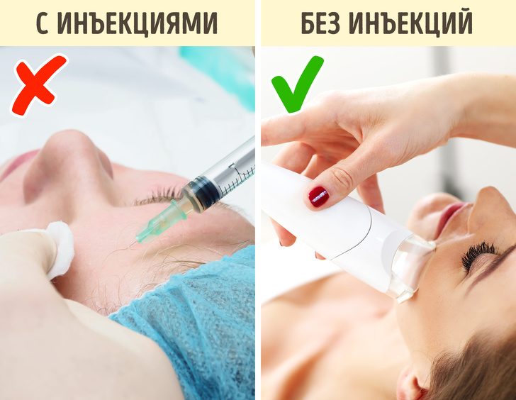 Мезотерапия без уколовМезотерапия считается процедурой холодного времени года. Однако безинъекционный метод — прекрасное решение для лета. Коктейль из органических кислот, микроэлементов, витаминов наносится на лицо, а проникновение в кожу осуществляется при помощи специального аппарата. Кожа практически не раздражается, поэтому специальная защита от ультрафиолета не требуется, достаточно ваших обычных уходовых средств.