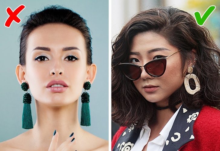 Длинными серьгами-цепочками или сережками необычной геометрической формы.