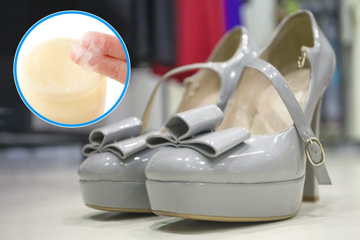 Лакированная обувь со временем теряет блеск, на ней появляются мелкие царапины. Чтобы этого избежать, смазывайте обувь вазелином. Это дешевая альтернатива брендовым средствам, ничуть им не уступающая.