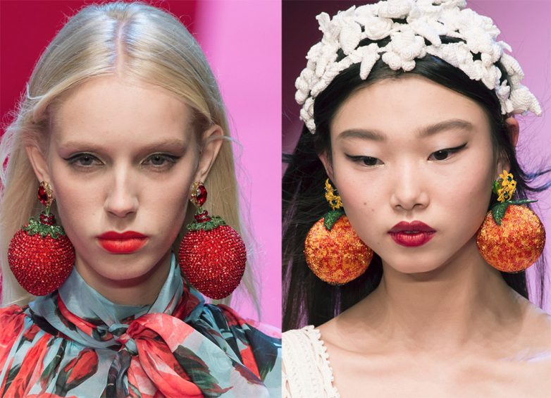 Отличной покупкой станут серьги Dolce & Gabbana, у этого бренда имеются украшения с яркими цветочками, камнями, ягодками и фруктами.