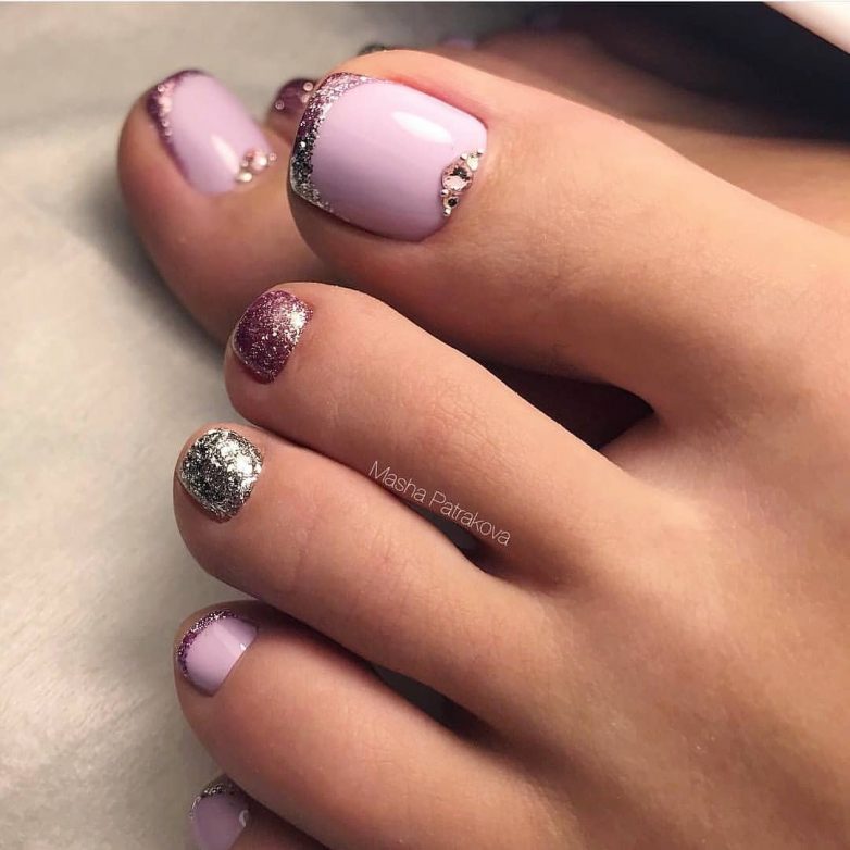 А так как за окошком лето, то можно использовать не только классический белый французский педикюр. Но и все больше в популярность входит цветной французский педикюр. А также новинкой в 2018 году — это французский педикюр на одном большом ноготке, а на всех остальных однотонное покрытие. Такой педикюр относиться к французскому педикюру и смотрится не то что красиво, а просто безумно бесподобно.