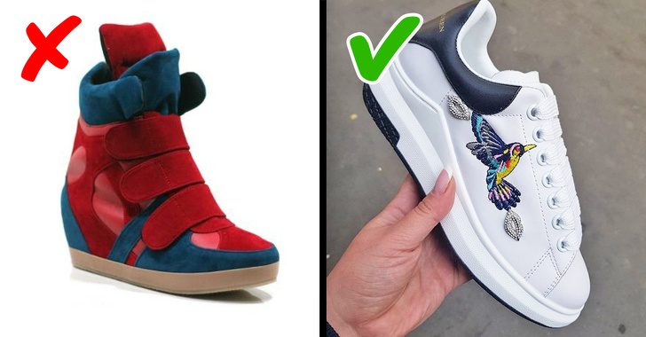 Кроссовки на танкетке ворвались в мир моды в 2011 году, и с тех пор девушки никак не расстанутся с этой обувью. Между тем такие кроссовки выглядят массивно, при этом комфорта отнюдь не прибавляют. Один сезон можно было поносить (модные тенденции часто идут вразрез с логикой), но и только. Так что с этим предметом гардероба стоило расстаться еще несколько лет назад.