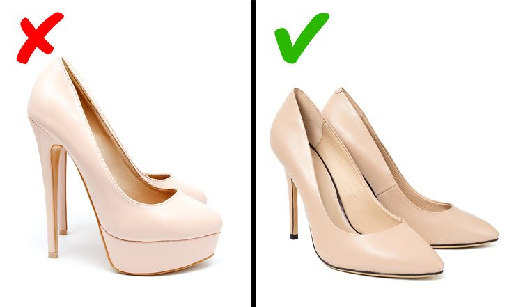 Туфли на каблуке и скрытой (или явной) платформе выглядят на ноге весьма комично и напоминают копытца. Не говоря уже о бесчисленных мучениях, которые выпадают на долю такой жертвы моды, ведь ходить по улицам города в такой обуви безумно неудобно. К тому же можно ненароком подвернуть ногу.Чем заменить? Классическими лодочками.