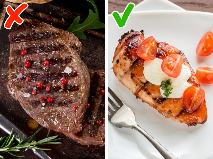Если вы не готовы отказаться от мяса, старайтесь выбирать такие продукты и блюда, где оно подвергалось минимуму обработки. И лучше перенесите обильные мясные обеды на выходные.