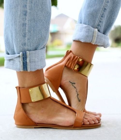 Розовые бусины разного размера — очень броско, нежно и женственно. В таких босоножках вы не останетесь незамеченными.14. Чрезвычайно популярны заклепки всех вариантов в качестве декора. Их можно носить как с джинсами, так и платьями.