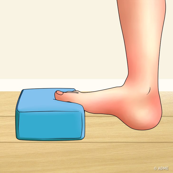 Поставьте пальцы одной ноги на блок для йоги или любой предмет высотой около 8 см таким образом, чтобы пятка осталась на полу.Наклонитесь вперед и перенесите вес тела на пальцы, насколько это возможно.