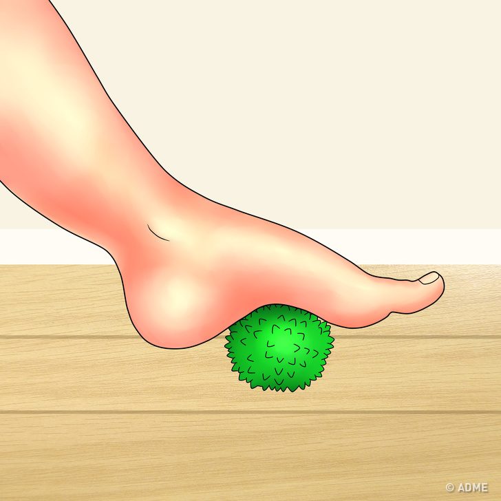 Положите под свод стопы теннисный или специальный массажный мячик.