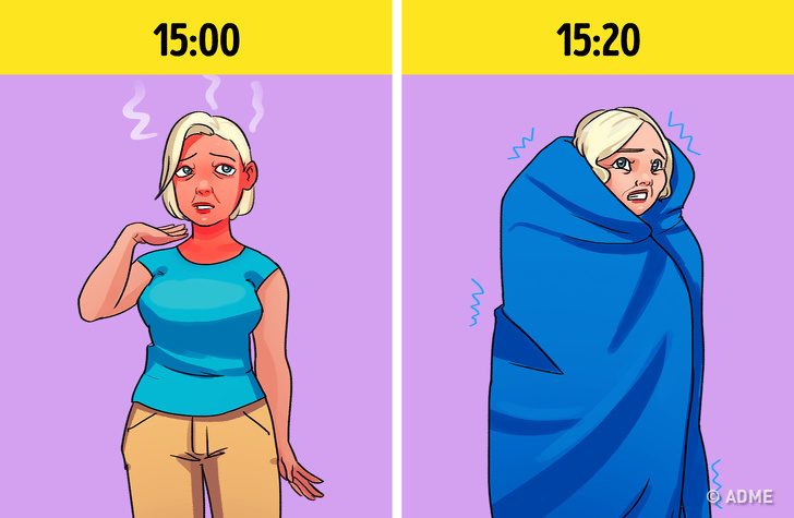 Учеными из Университета Эмори были исследованы приливы и ночная потливость во время менопаузы. Во время приливов сначала ощущается сильный жар, краснота на лице и шее, а затем наступает резкий озноб и обильно выделяется пот. В исследовании принимали участие здоровые женщины в возрасте от 45 до 55 лет.