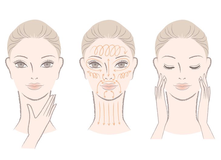Тщательно вымойте руки с мылом, вытрите насухо. Нанесите массажное средство (крем, гель, масло) на нижнюю часть лица. Легко и без нажима проведите руками по нижней челюсти в направлении от мочек к подбородку, затем в обратную сторону. Усиливайте давление, увеличивайте темп.