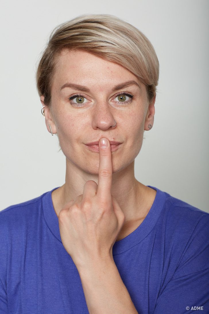 Это упражнение при регулярном выполнении делает губы полнее и разглаживает морщинки над верхней губой.