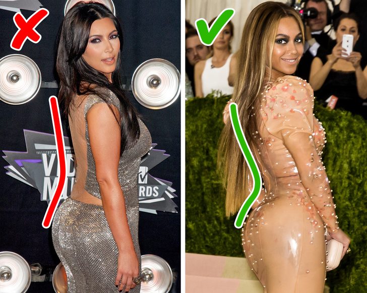 Психолог Дэвид Льюис (David Lewis) из Университа Билкент провел 2 эксперимента. В первом сотне мужчин было предложено оценить привлекательность женщин на фото, чьи фигуры подверглись цифровому изменению в поясничной области (были показаны разные углы прогиба). Наиболее красивым мужчины посчитали примерно 45-градусный угол. Во втором тесте ученый решил выяснить наверняка, предпочитают ли испытуемые этот вариант, поскольку при нем ягодицы выступают сильнее, или красота все-таки заключается непосредственно в изгибе спины. В ходе этой проверки также подтвердился тот факт, что привлекателен именно сам изгиб, причем вне зависимости от размера ягодиц.