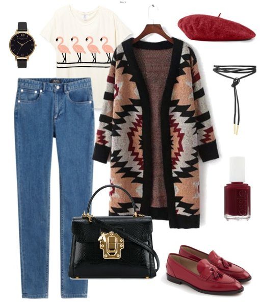 Прямые классические джинсы также в моде, носите их с кардиганом и стильными туфлями без каблука, дополнив аксессуарами в стиле минимализм.