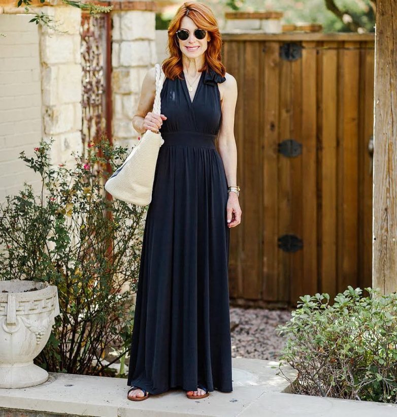 Советуем присмотреться и к интересным платьям длины макси, которые лишены каких либо принтов и декора. Подобный минимализм шикарно впишется в образ 40-летней модницы, и сделает его более элегантным и женственным. Как говорится, все гениальное — просто.