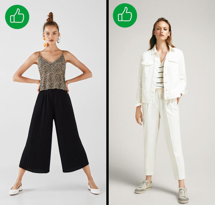 Чтобы модные брюки не висели в шкафу, а действительно стали неотъемлемой частью повседневных и праздничных образов, нужно уделить им пристальное внимание еще в магазине.