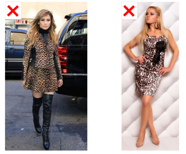 К сожалению для многих дам, леопард отлично смотрится только в повседневных образах с минимумом макияжа на лице. Звериный принт никак не подходит к вечернему наряду и особенно яркому макияжу.