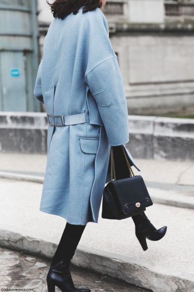 Если вы носите колготки или же леггинсы под пальто, то постарайтесь подбирать их в одном цвете с обувью. Это поможет визуально удлинить ногу, благодаря отсутствию видимой границы с голенищем.