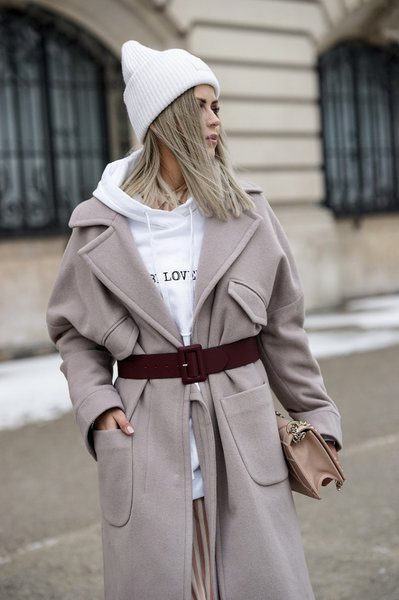 Если в вашем пальто нет ремня, то вы можете добавить этот аксессуар в свой образ. С его помощью вы подчеркнете талию и создадите более женственные формы.