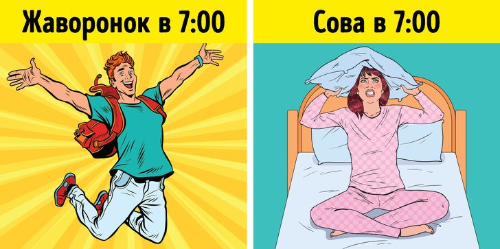 В 70-е годы ХХ века ученые как следует разобрались в циркадных ритмах и установили, что есть так называемые жаворонки, которые просыпаются спозаранку бодрыми и готовыми к трудовым подвигам, а есть совы, которые проявляют наибольшую активность по вечерам. Как быть, если представитель группы жаворонков и член группы сов встретятся и решат создать семью? Ведь такой союз может доставлять некоторые неудобства и даже быть вредным для здоровья.