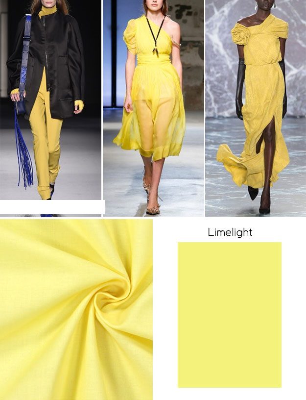 Limelight яркий и «острый», как описано Pantone. Он является самым легким и ярким из гаммы Pantone 2018/2019, предлагаемых для осенне-зимней палитры, всего лишь ярче, чем желтый цвет упавших листьев.