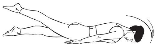 Займите исходное положение предыдущего упражнения. Вдохните, потянитесь во всю длину своего тела. На выдохе напрягите мышцы живота и ягодиц и поднимите вверх левую ногу так, чтобы бедро и верхняя часть стопы были направлены строго вниз.
