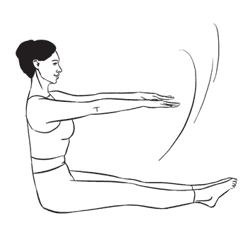Сидя, ноги выпрямлены перед собой, стопы на расстоянии полуметра друг от друга. Выровняйте таз, убедившись, что сидите на седалищных буграх.Выполните подготовительный вдох и потяните вверх туловище. Выдыхая, подтяните мышцы тазового дна вверх, а нижнюю часть живота – к позвоночнику.