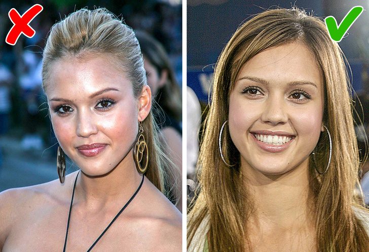 Тонкая изогнутая линия бровей придает чертам излишнюю резкость, а форма домиком искажает лицо в неестественной удивленной гримасе. К тому же брови в нитку привлекают взгляд к морщинам вокруг глаз.