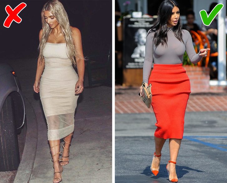 Если хотите визуально удлинить ноги, обратите внимание на обувь в тон кожи. К легким нарядам подбирайте более ажурную обувь светлых оттенков, к плотным платьям — закрытую.