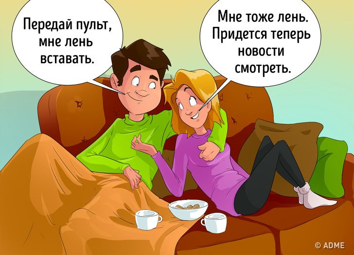 Нередки случаи, когда люди, долго живущие в браке, начинают вести малоподвижный образ жизни. Шансы на то, что один из супругов будет посещать фитнес-клуб или еще как-то заниматься спортом, довольно невысоки. Вопреки распространенному мифу о мужчинах, беспрестанно лежащих на диване, женщины ленятся больше.