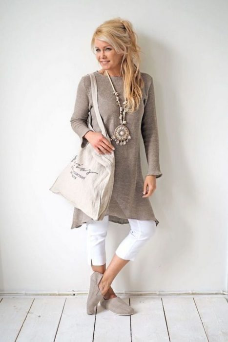 5. Простое платье-туника пудровой гаммы одновременно изысканно и комфортно, особенно, если правильно подобрать к нему аксессуары.