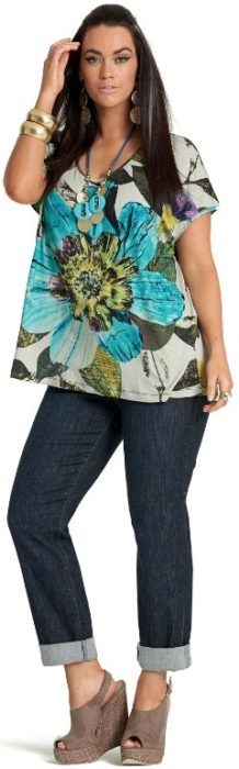 И все-таки, незаменимая вещь в гардеробе любой модницы с формами – свободная туника. Что может быть более удобным и практичным. Эту вещь можно легко комбинировать с другими, меняя при этом фасон и расцветку в зависимости от настроения хозяйки и модного повода.