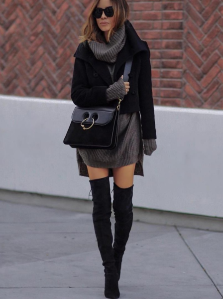 Стильные платья под осенние сапоги