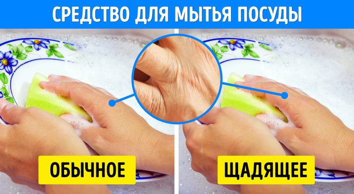 Не секрет, что руки могут выдавать возраст. Поэтому уход за ними очень важен в борьбе со старением. Не стоит ограничиваться лишь подбором щадящих средств бытовой химии. Несмотря на заверения производителей, большая часть такой продукции содержит вредные для кожи вещества. Они не только не щадят ее, но и способствуют преждевременному появлению признаков старения. Поэтому при работе с такими средствами лучше пользоваться бытовыми перчатками.