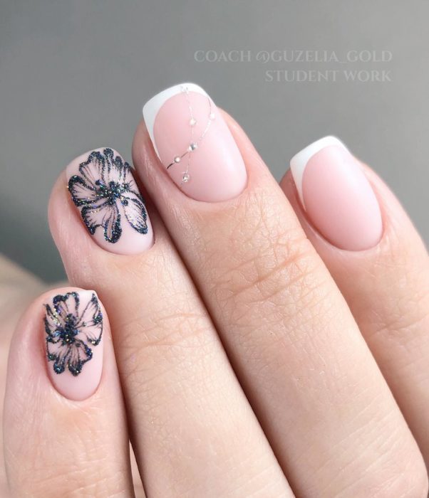 куда же мы без френча? Классическим французским маникюром сегодня никого не удивишь, но если разукрасить его цветами, кружевами или абстрактными рисунками, френч заиграет новыми яркими красками;