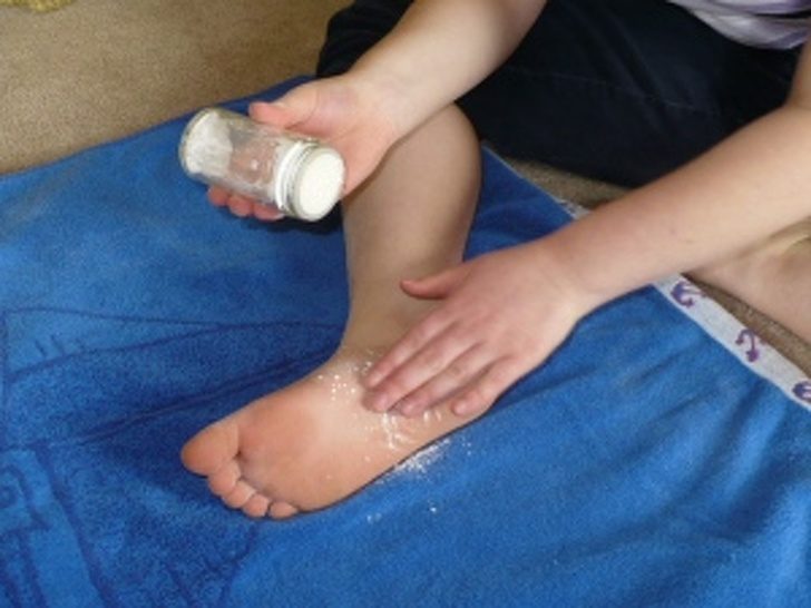 После душа обработайте сухие ноги содой или крахмалом между пальцами: это поможет избежать чрезмерного потоотделения.
