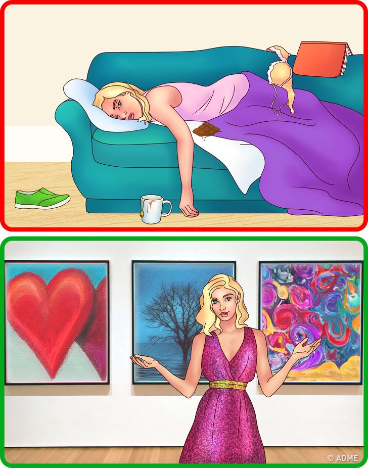 Фотографии, подарки, совместные покупки, одежда, в которой вы ходили на первое свидание с ним, аксессуар, который он похвалил… Все, что вызывает ассоциации с человеком, который вас отверг, нужно убрать из поля своего зрения: выбросить, продать, пожертвовать в приют для бездомных или просто на время спрятать. К этой же категории относятся: мелодия, под которую вы мечтали о несбывшейся любви, книга, которую он порекомендовал, фильм, который вы смотрели вместе. Новые вещи — новые эмоции. И это прекрасный повод обновить гардероб, библиотеку и сменить плей-лист.