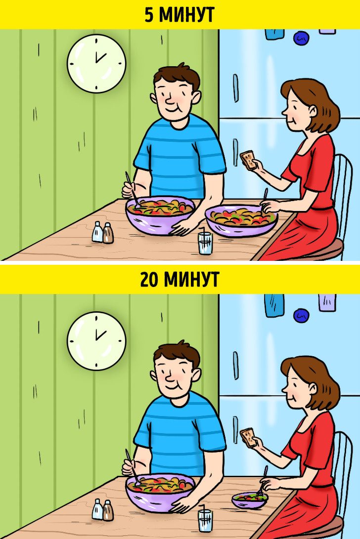 Но это еще полбеды. Ученые говорят о том, что мужчины пережевывают пищу быстрее, чем женщины. Поэтому замужняя дама неосознанно подстраивается под темп супруга и в итоге съедает больше, чем нужно, ведь организм просто не успевает подать сигнал о насыщении.