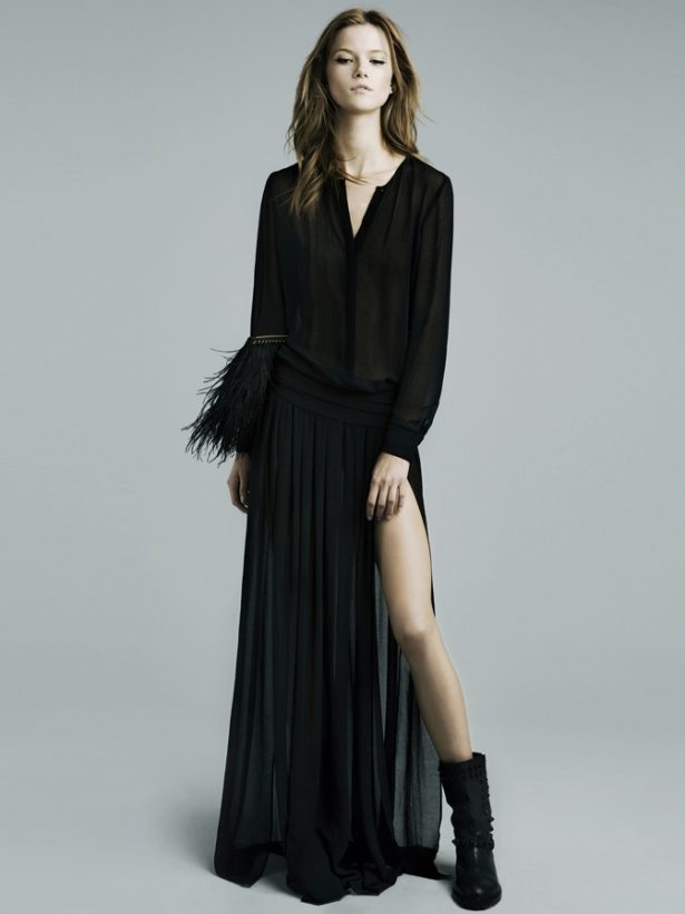 4. Чтобы образ соответствовал праздничному настроению, обратите внимание на модели, украшенные перьями или бахромой. Если не хочется злоупотреблять специфической отделкой, используйте ее при выборе сумки или накидки, что добавит наряду шика.