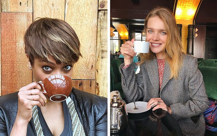 Чтобы вся тяжесть ранних подъемов не отражалась на коже вокруг глаз, Даки Тот советует выпивать с утра полную бутылку воды, а чуть позже — чашку эспрессо. Ее любовь к тонизирующему эффекту кофе разделяют многие модели, в том числе легендарная Тайра Бэнкс и очаровательная Наталья Водянова.