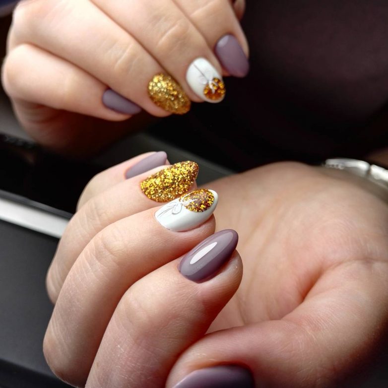 Золотой, подойдет девушкам с контрастным типом внешности. Прекрасно сочетается с черным и белым оттенками.