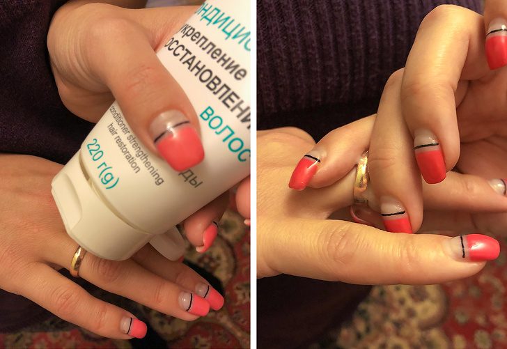 Чтобы подготовить кутикулу к маникюру, нанесите на нее кондиционер для волос. Оставьте на несколько минут, а затем приступайте к преображению ваших рук.