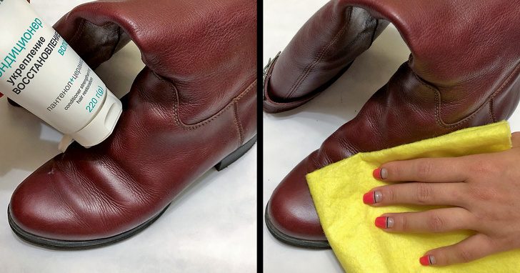 Протрите кожаную обувь кондиционером для волос.