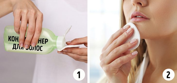 Если под рукой нет продуктов для снятия макияжа, в качестве экстренной помощи сгодится кондиционер для волос.