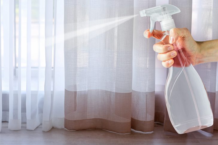 Нанесите средство на шторы, мягкую мебель, ковры.
