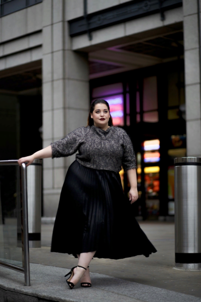 Самой оптимальной является средняя длина, когда подол длиннее коленных чашечек на несколько сантиметров. Также девушкам plus size подойдут платья и юбки до щиколоток или совсем в пол, что полностью скроет изъяны ног, если таковые есть.
