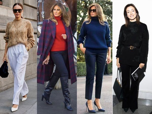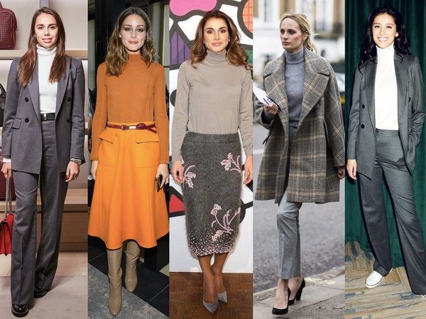 Водолазка должна подходить под жакет, и поэтому нужно отдавать предпочтение тонким моделям в рубчик.