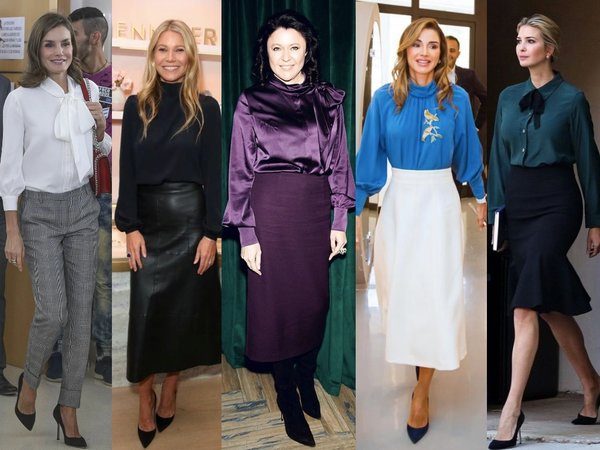 Блуза может иметь прямой и расслабленный крой, рукав реглан, бант или жабо, любого цвета или с классическим принтом, например, геометрия и горох.