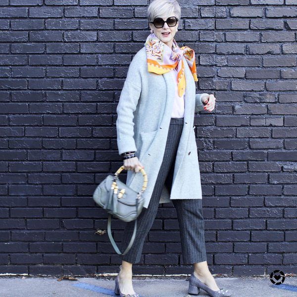 Сольный серый идёт далеко не всем. В нём будет комфортно красавицам с незаурядной внешностью, девушкам, предпочитающим яркий макияж и стильные аксессуары. Дамы элегантного возраста должны понимать, что им лучше воздержаться от такого эксперимента.