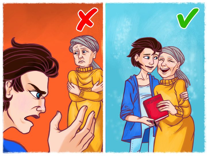 Поймите, у престарелых людей появляется много страхов: беспомощность, заброшенность, смерть в конце концов. И без нашей поддержки им не справиться. Разговаривайте с родителями, по возможности старайтесь обеспечить им комфортные условия. Не ругайте маму, если она забыла вовремя принять лекарства, лучше подарите ей тетрадку, куда она будет записывать свои медицинские назначения.