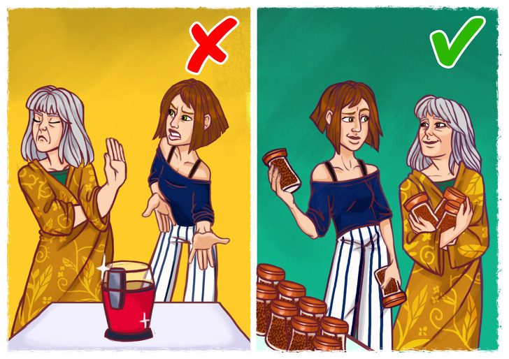 Не хочет ваша мама покупать кофеварку, а предпочитает отвратительный растворимый кофе? Пожалуйста! Если спорный вопрос касается только их самих и никак не вредит здоровью — уступите.