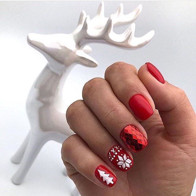 Новогодний маникюр — это не обязательно яркие оттенки, стразы, блестки и праздничная тематика. Это может быть однотонный маникюр, различные нейл-арты и дополнительные аксессуары на ноготках.